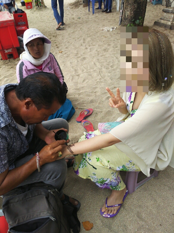 クタビーチで「ヘナタトゥー」と「三つ編み」にチャレンジ