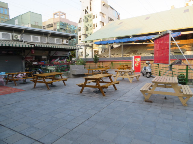 浅草という地名にひかれて行ってみました、私が好きな浅草とはちょっと違ったようです、正興街に近い国華街にある飲食・ショップ街で今一つ活気がないです、閉まっているお店が多く、特徴のあるお店もないようです、ここはゆとりある敷地なのでベンチでゆっくり、イベントの時はいいかも、なぜか七福神の看板がありました。