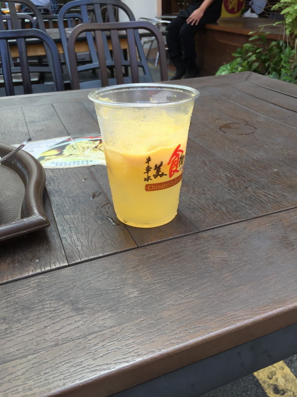 シンガポール半日観光でチャイナタウンでランチ。1人10シンガポールドルのクーポンをいただき食事を。たくさん見せが並んでおり何を食べるか迷いチキンライスとオレンジジュースをいただきました。チャイナタウンの食べ物は比較的安いです