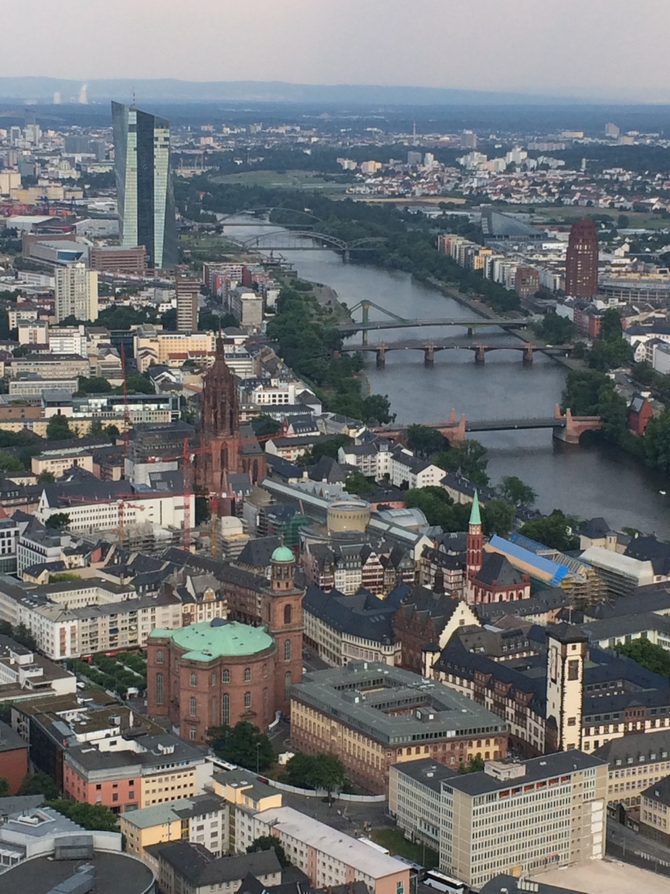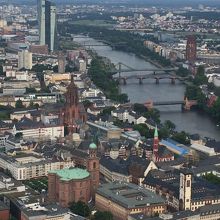 地上200メールの高層ビル屋上から中世建物群、大聖堂、マイン川などフランクフルトの観光スポットを一望できます。