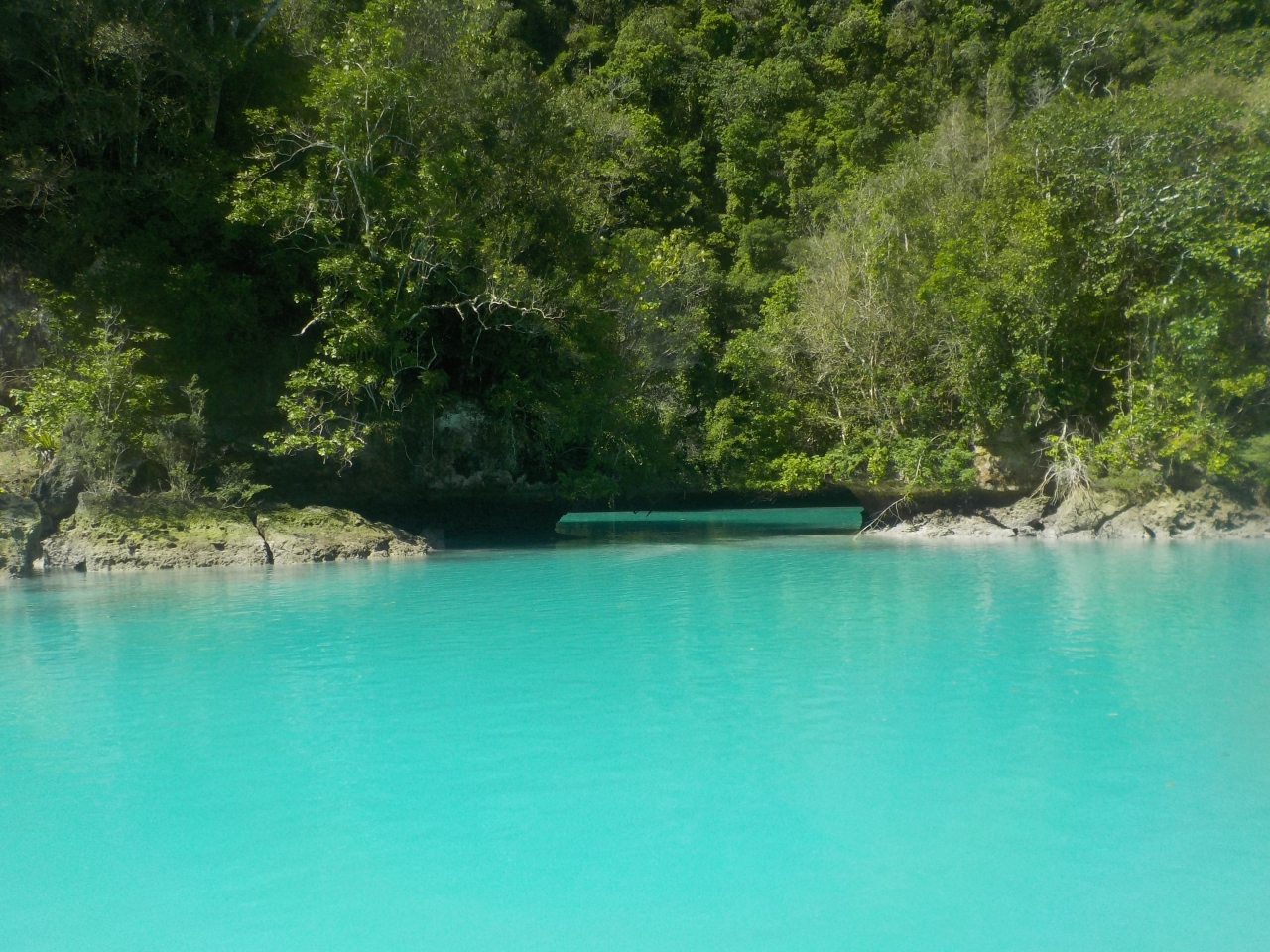 どのようしてこのような色が出るのだろうか、と思うほどエメラルドグリーンと白が微妙に混ざる、不思議な色彩を放つ海水が湾のなかに広がっています。ここでスタッフが先に潜って海面下に堆積しているまっ白い泥を集めてきます。それを全身に塗ってお肌パック。少し乾いてきたところで海に飛び込み泥を落とします。肌がつやつやになったかどうかはわかりませんが、こういう経験はここでしかできませんね。