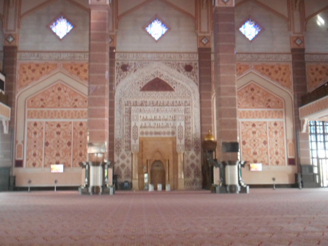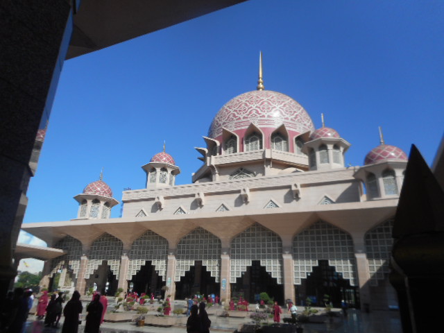 その時の政権が首都機能を移す為に作った新しい都市に造られた湖に浮かぶ6階建てのピンクのモスクです。外装、内装はピンクと白を基調にしてイスラム装飾で、内部は、女性は無料のフード付きのピンクのバスローブを着ての見学、男性は半ズボンでは入場できません。