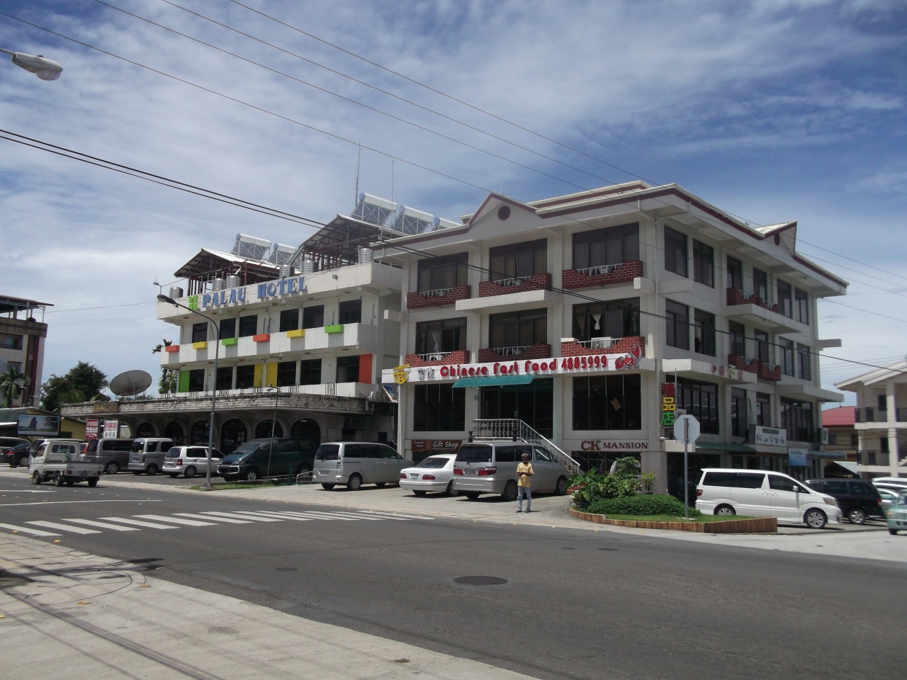 繁華街と言える賑やかな通りがあるのは、パラオではコロール島だけです。大きな通りをはさんで2,3kmくらいの間に、ショッピングセンターをはじめ色々なお店がひしめき合っています。色々な国の料理を味わえるレストランもこのあたりに集中しているので、ほとんど毎日のようにこちらに出かけ食事やショッピングを楽しみました。