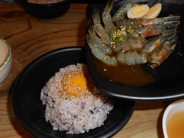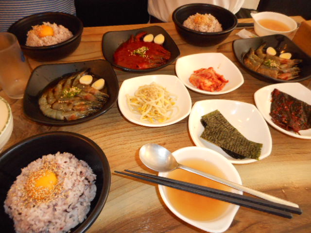 基本はカンジャンセウの専門店。メニューの多さはエビの本数とセット内容によるものです。基本のセットはカンジャンセウ(普通、辛)雑穀タマゴごはん、のり、スープ。カンジャンケジャンより食べやすく、プリプリモチモチ。タマゴごはんをそのまま食べていたらそのまま食べていたらおばちゃんが来て、こうするんだよ、とごはんにタレをかけてくれました。タレ自体はそれほどしょっぱくありません。ヤンニョムはそれほど辛くなく、むしろ甘酸っぱい感じ。ビール2本飲んで3人で3万5千W程。