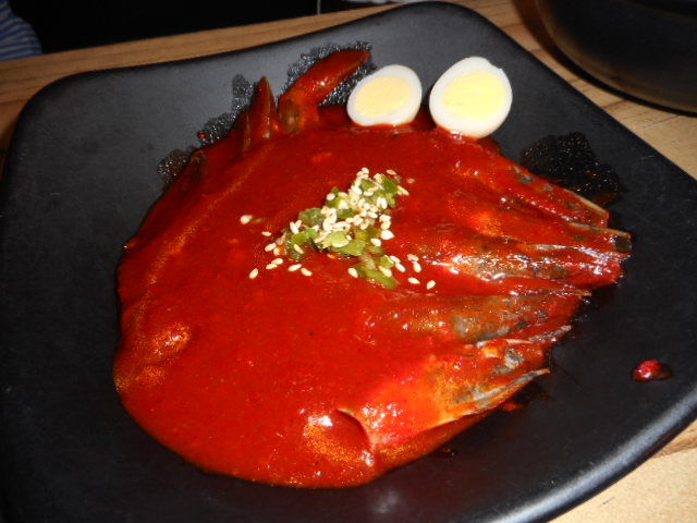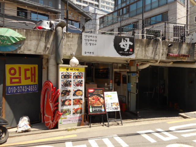 カンジャンセウ、初めて食べました。駅から少し探しましたが、10分ほどで到着。レンガ造りのアパートを抜けた一角に大きなメニュー看板がありました。