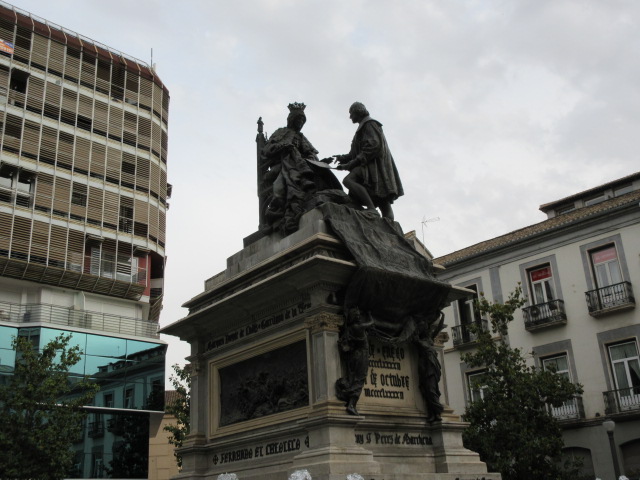 この広場自体はそんなに大きくなく、観光名所でもないと思いますが、グラナダ観光、アルハンブラ観光の起点としてとても便利な場所です。アルハンブラバスがここから出ます。夜も近く、ヌエバ広場あたりまでバルが続いているので明るい。カテドラルが近いので、歩いて観光できる、ヌエバ広場にはタクシーがいつもいる、など。この近くのホテルに泊まって夜も早朝も楽しめ、アルハンブラにも行きやすくて便利でした。
