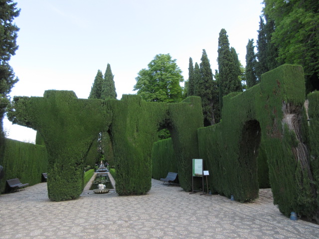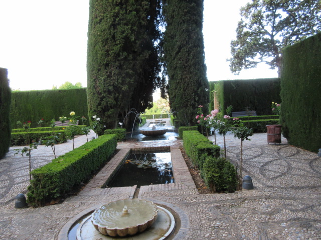 アルハンブラの周り方を日本語情報センターで教えてもらい、地図をもらって、まず、ここから。水がところどころ出ている庭の美しさに見とれました。ゴミ一つ落ちてなくて、さずが世界の観光地って感じでした。ここから周る人が少ないのか、朝一番に行ったら空いていました。