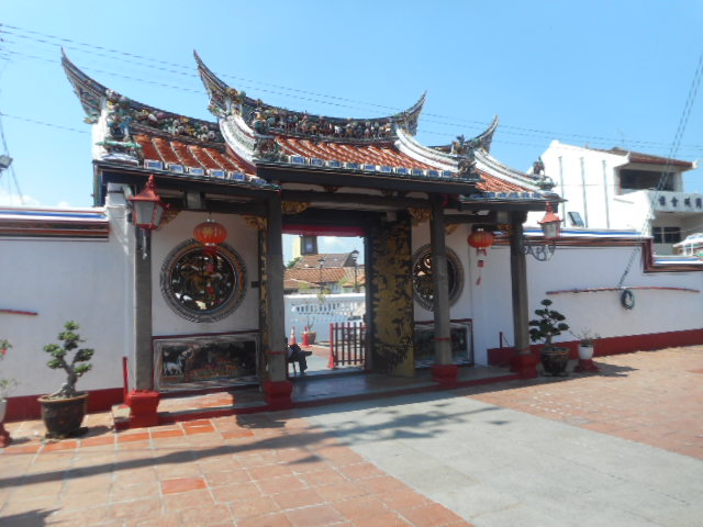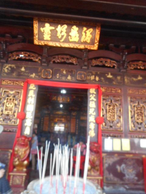 ここもツァーで観光しました。”青雲亭”の名称で、ガイドさんの説明に由ると、明の鄭和のマラッカ寄港を讃えて、17世紀後半に華人によって建立された寺院だそうで、本堂の装飾は立派なもので、その当時のままで残されているそうです。信徒が長いおみくじの木を振りながら、1本、飛び出た木で占っていました。
