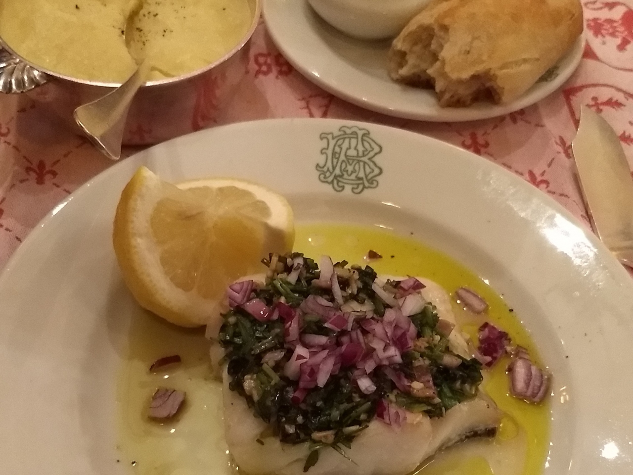 メインは日替わりメニューの白身魚のソテーを注文。暑い天候だったので、レモンとエシャロットが爽やかな後味でペロリと頂けた。