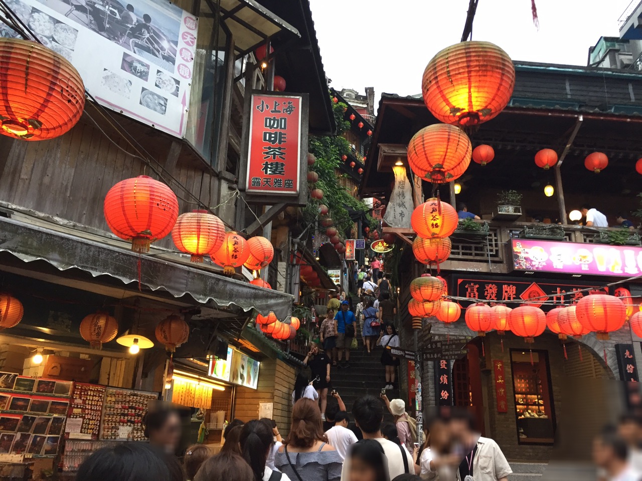 提灯が灯る夜の九份街が観たくて、女性二人だから安全性も考慮して、オプショナルツアーに申込みました。