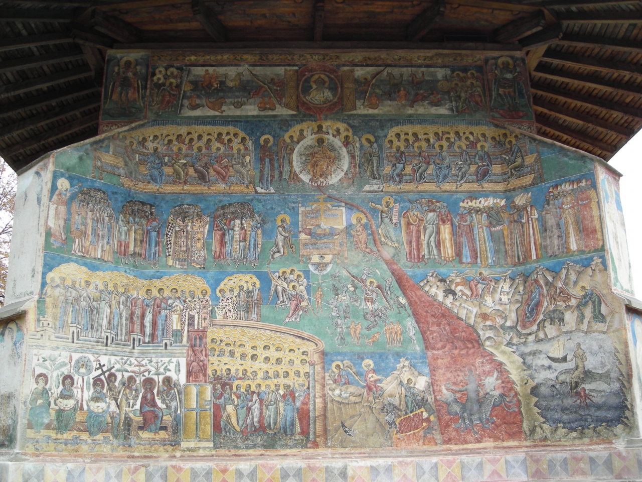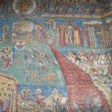 1488年完成。世界遺産。“ヴォロネツ・ブルー”と呼ばれる印象的な色の外壁フレスコ画。特に西面全体に描かれた「最後の審判」は圧巻。ブコヴィナの修道院のフレスコ画の最高傑作と思われる。“北のシスティーナ礼拝堂”と呼ばれる所以。