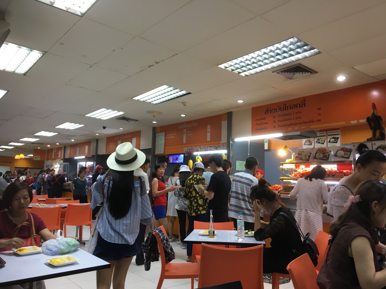 経済性重視派には、空港での食事も安く済ませたいところですが、北側の団体バス乗り場から外へ出て、まっすぐ行くと、空港ビルがあり、一階にクーボン式のフードコートがあります。写真のメニューなので、便利で安くオススメです。