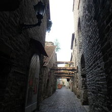 壁沿いには何が書いてあるかは全く分かりませんが、古い歴史がありそうな石に刻まれた彫刻があって、朝9時半頃トあって人通りも全くなかったので、まるで中世に迷い込んだような雰囲気が味わえました。