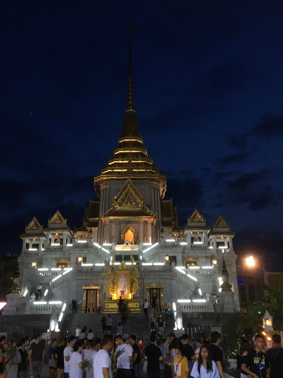チャイナタウンにそびえる高さのある本堂で、白壁に黄金色の装飾のある建物はとても写真映えします。昼間も良いですが、何か特別な日のためか、夜間拝観もあり、ライトアップされた風景は、夜空に映えて、とても幻想的でした。