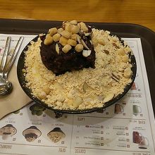抹茶、チョコ、時期によってはいちごなどもあるようでしたが、黄粉とあんこのかき氷をいただきました。