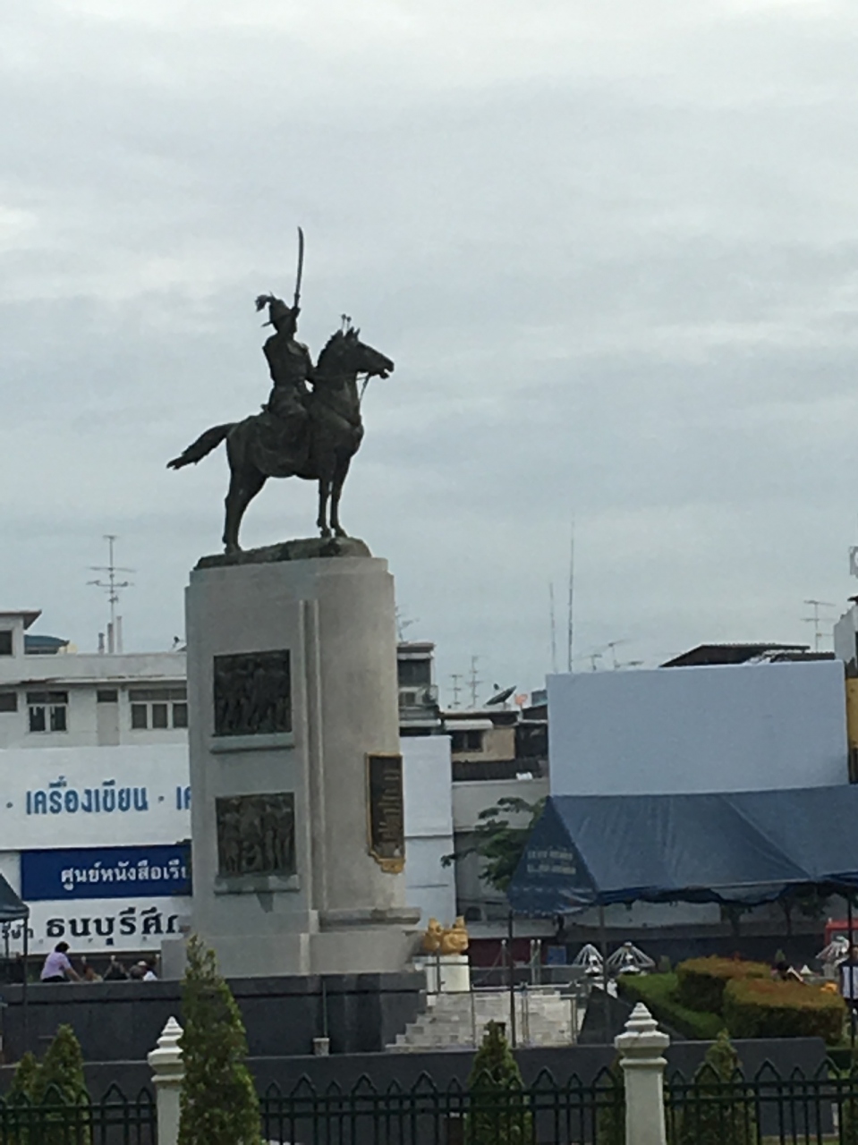 大きな広場の中央に、馬に乗って刀を掲げている立派な像がありました。周囲がロータリーになっていました。近くにタイ国鉄のウォンウィエンヤイ駅前があるので、目印に最適で、像を見学してから、メークロン方面に向かいました。