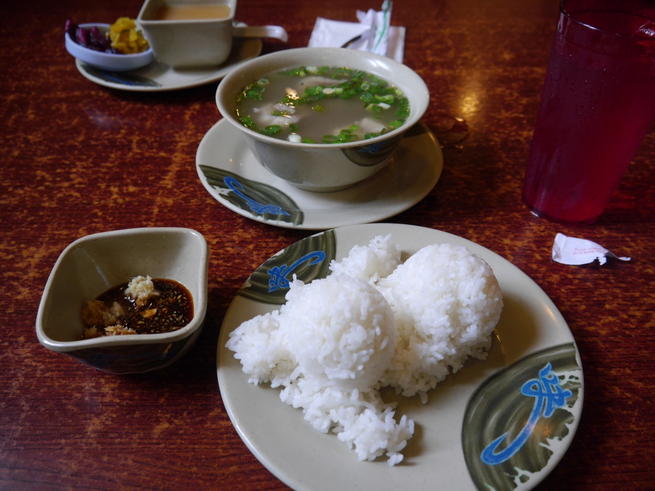 オックステールは骨から簡単に肉がとれ、おろした生姜に醤油を入れて作った薬味をつけて食べると最高に美味しいです。又、ご飯をスープに浸して食べると、これまた最高に美味しかったです。