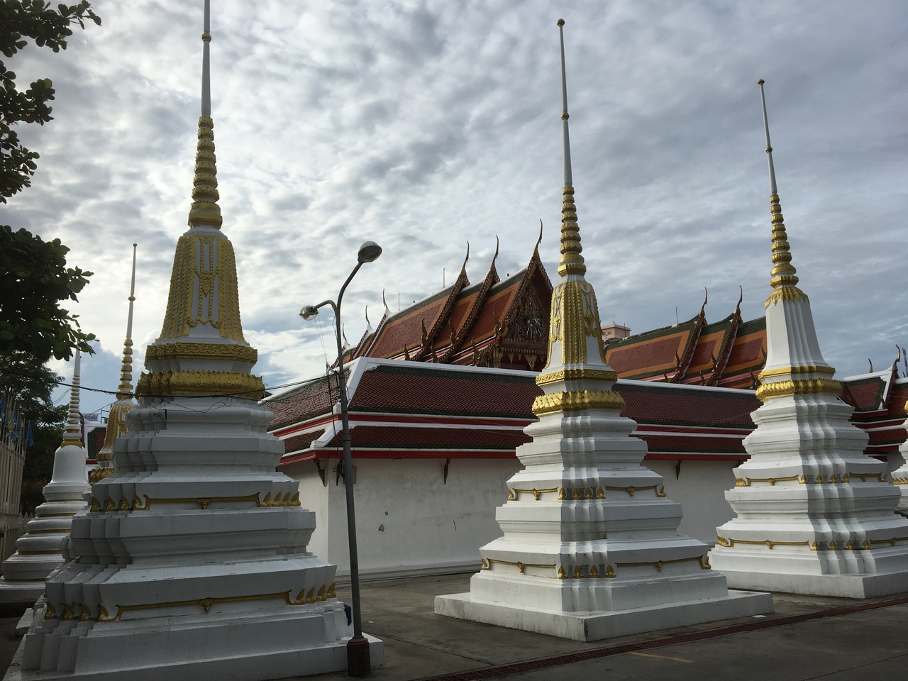 チャイナタウンにあり、ワットトライミットから中華門を抜けて、しばらく歩くとある大きな寺院で、第2級王室寺院ですが、駐車場が広くガランとしていました。ヤオラヤート通りより一本チャオプラヤ川よりなので、観光客もいませんでした。普通の寺院でした。