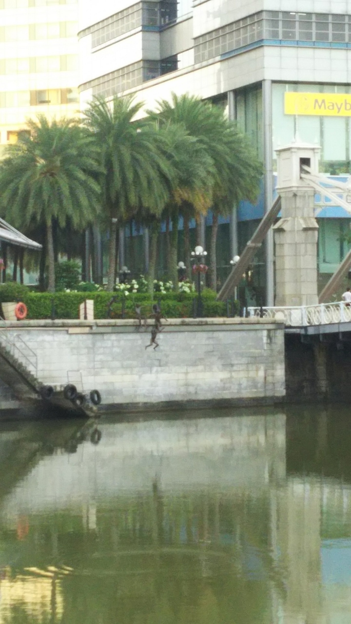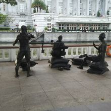 シンガポールの早朝に、散歩しながらシンガポール・リバー沿いを歩いた際に見ました。子供が川に飛び込む像や、びわを引いている像などマリーナ地区の美術館の多い地域で雰囲気を醸し出しておりました。シンガポールらしいですね。