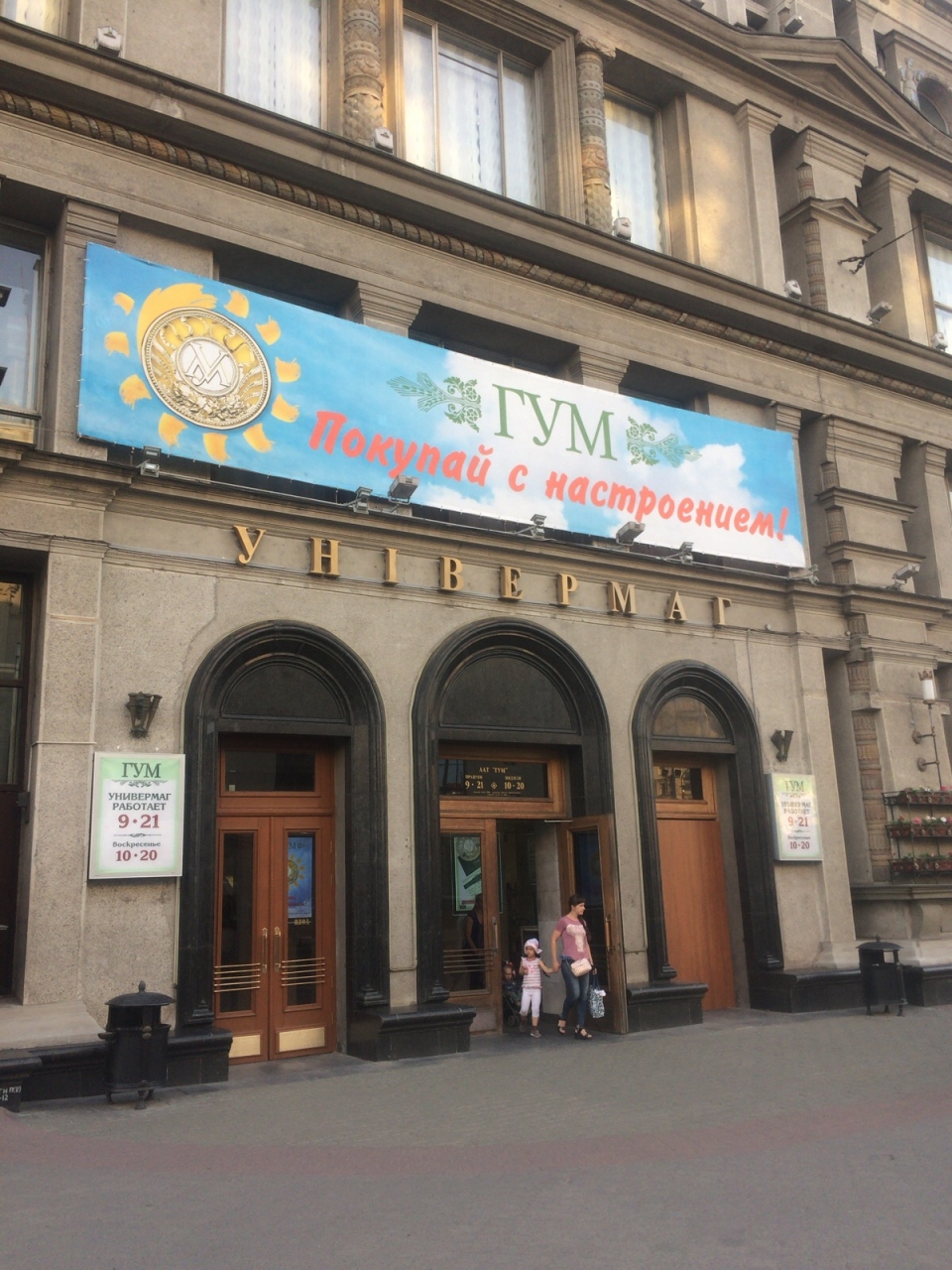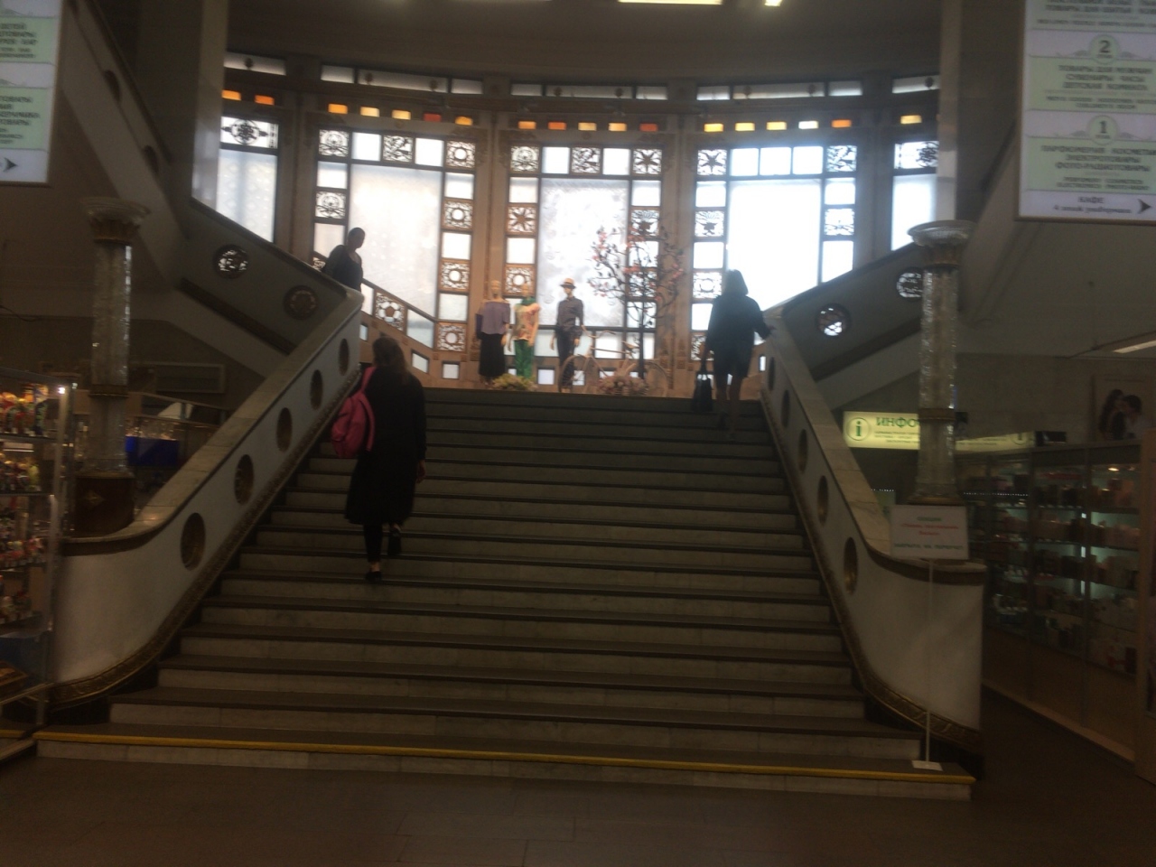 グムはロシア各地で見かける老舗百貨店で、ここミンスクにも店舗があります。外観は普通のビルっぽいです。中に入ったところにある階段はレトロでよかったです。