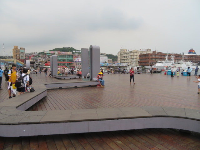 基隆港に面してある廣場です、廣場は板張りで出来ていてオブジェなどあり多くの人がくつろいでいます、台鐵基隆駅のそばにあり、各地から基隆に到着する路線バス停が廣場前にあります、ここから基隆港や高台にある中正公園など眺めることが出来ます、今回行った時には大型客船が停泊していて眺めて楽しみました