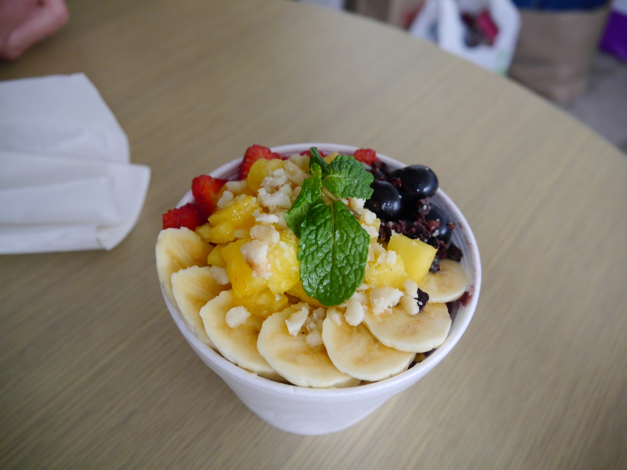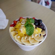 イチゴやバナナ、パイナップルなどの果物が豊富にトッピングされており、フルーツの甘さとアサイーの酸味がマッチして、とても美味しかったです。スモールサイズでもたっぷりな量があり、二人でシェアして食べました。