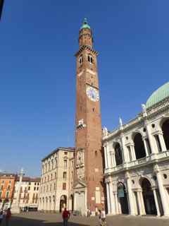 パッラーディオ建築の白くて優美なバジリカの隣にあります。