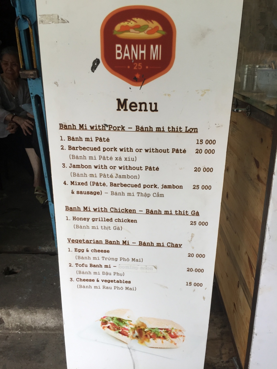 25,000ドン(約125円)でボリュームたっぷりのバインミー。注文したあとで作ってくれます。