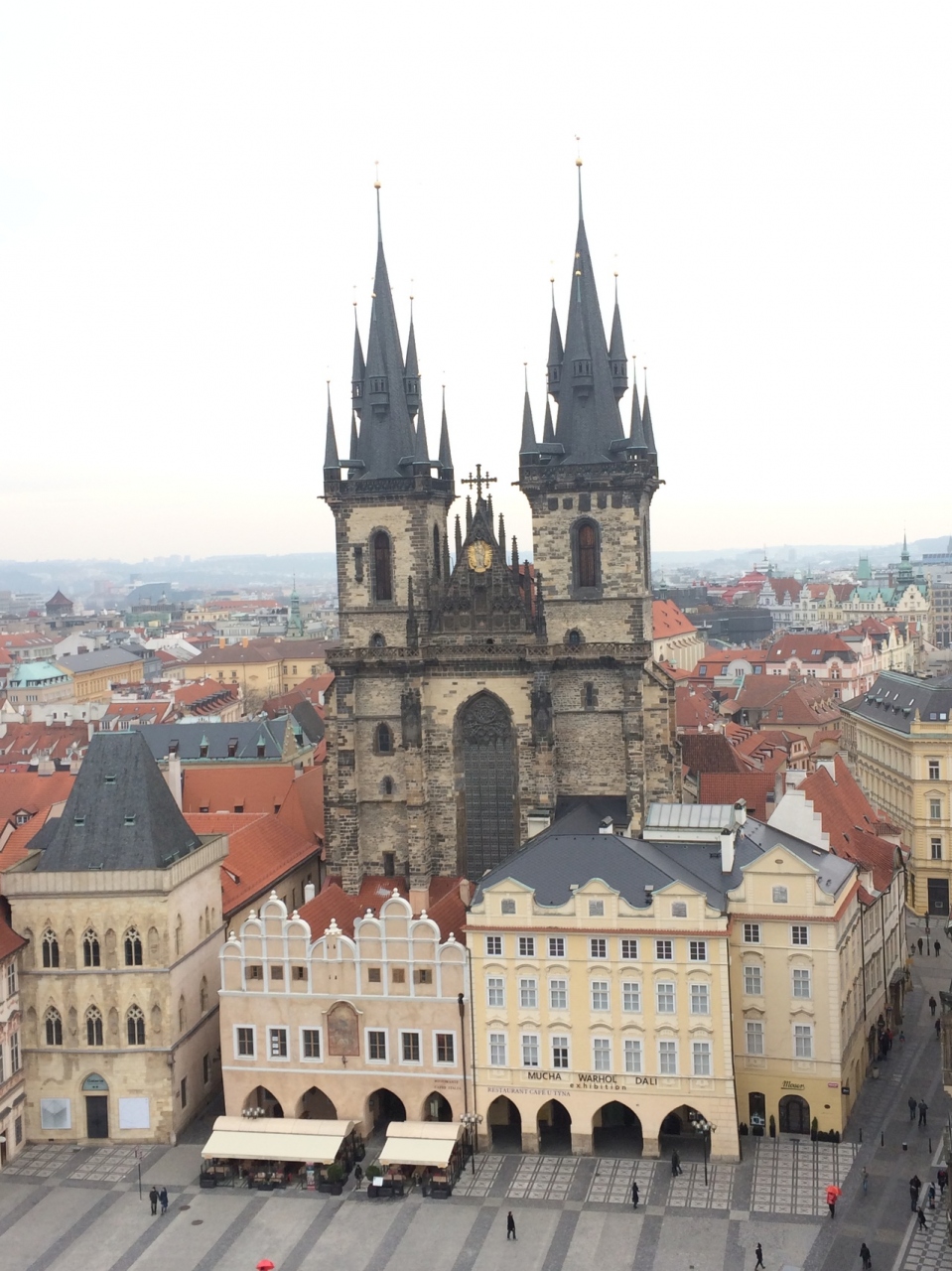 他にも、展望台に上ることをお勧めします。尖り屋根が特徴的なティーン聖母教会を上から眺めることができます。