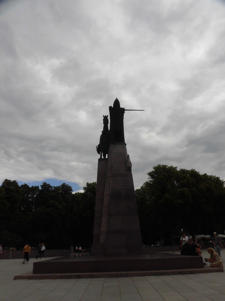 大聖堂の広場という意味です。広場の王宮側には、リトアニア大公国の創始者のゲディミナス王の像が立っています。普通は馬に乗っている銅像が多いと思うのですが、馬を降りて、剣を抜き戦闘モードに入ったデザインになっています。
