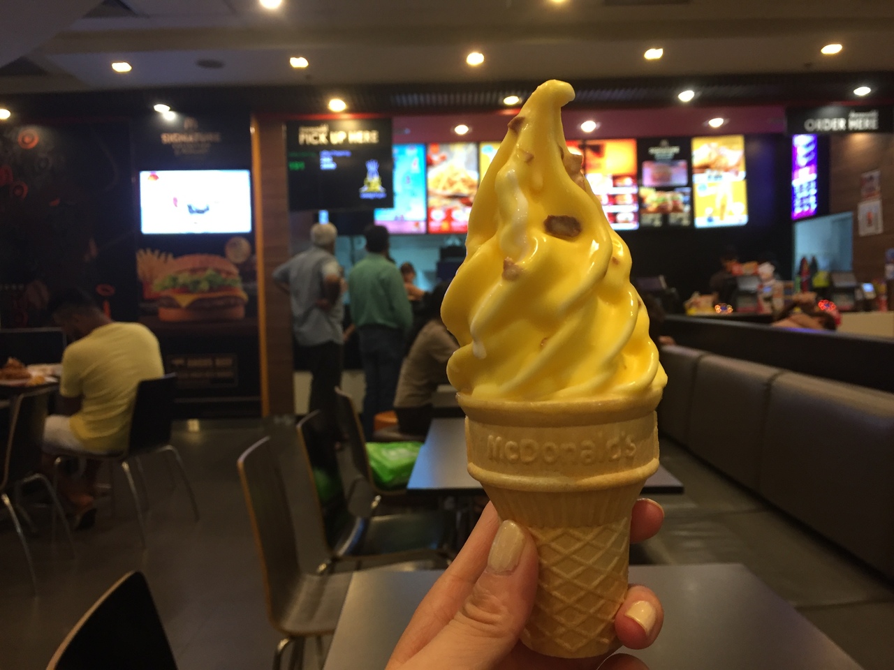 期間限定?のミニオンズのマンゴーチョコソフトクリームをたべました。そこまで甘ったるくもなくほどよくクールダウンできました。