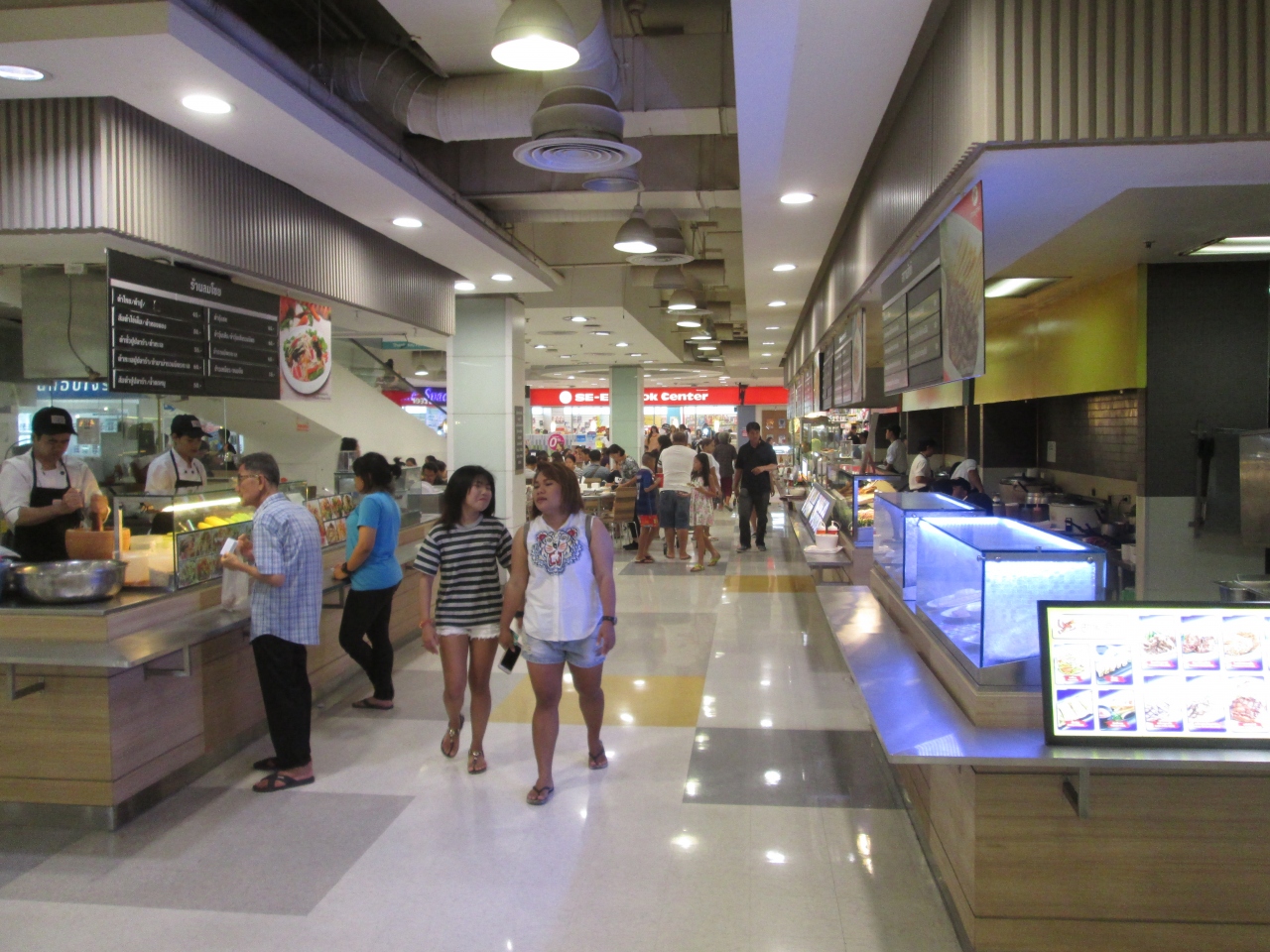 テスコロータスラマ1世店に定番のフードコートがありました。このフードコートは1階奥のエリアにあるレイアウトになっていました。座席数が多く広々としたフードコートでした。フードコートが好きなタイ人のために、朝早くから利用可能でした。
