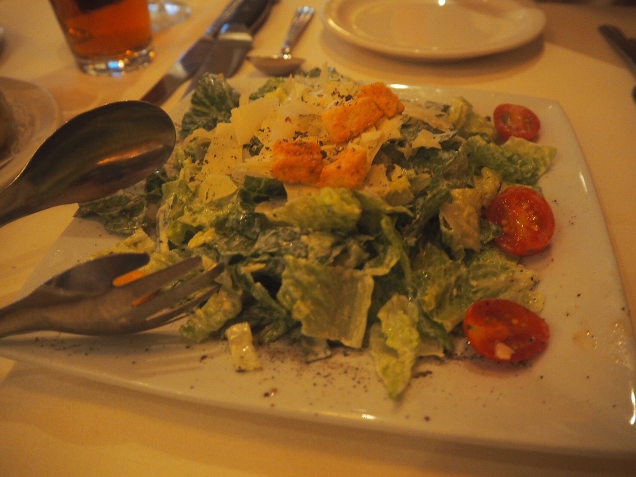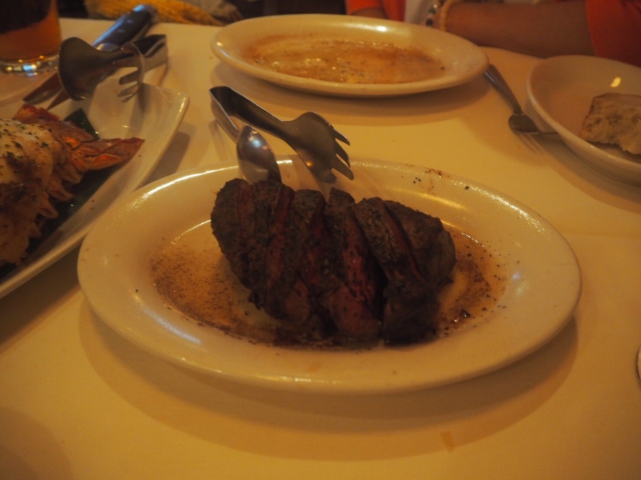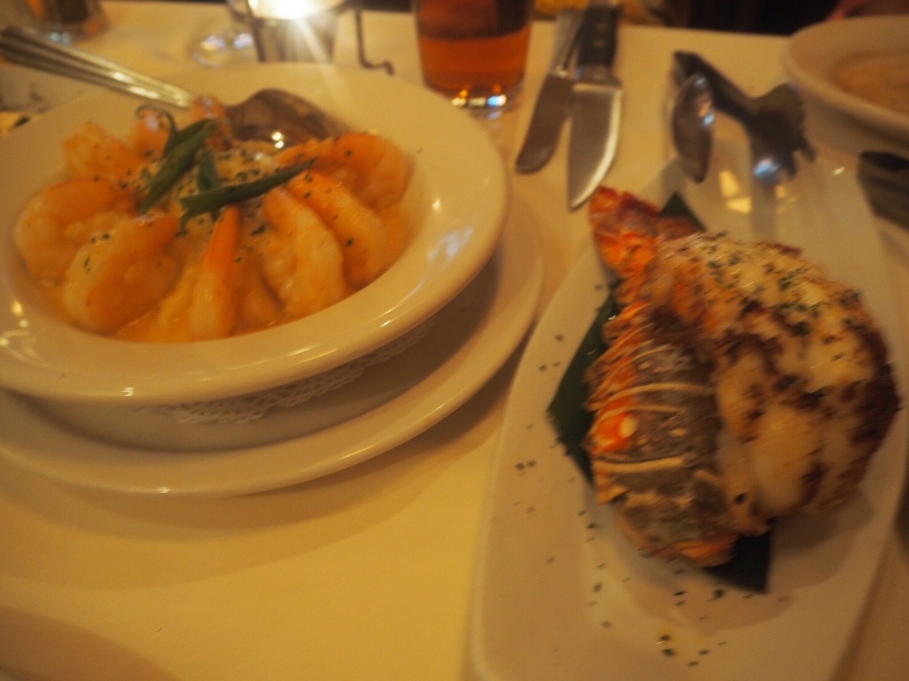 シーザーサラダ、オニオングラタンスープ、シュリンプ、ロブスター、フィレステーキをいただきました。確かクーポンで前菜一品が無料になったと思います。