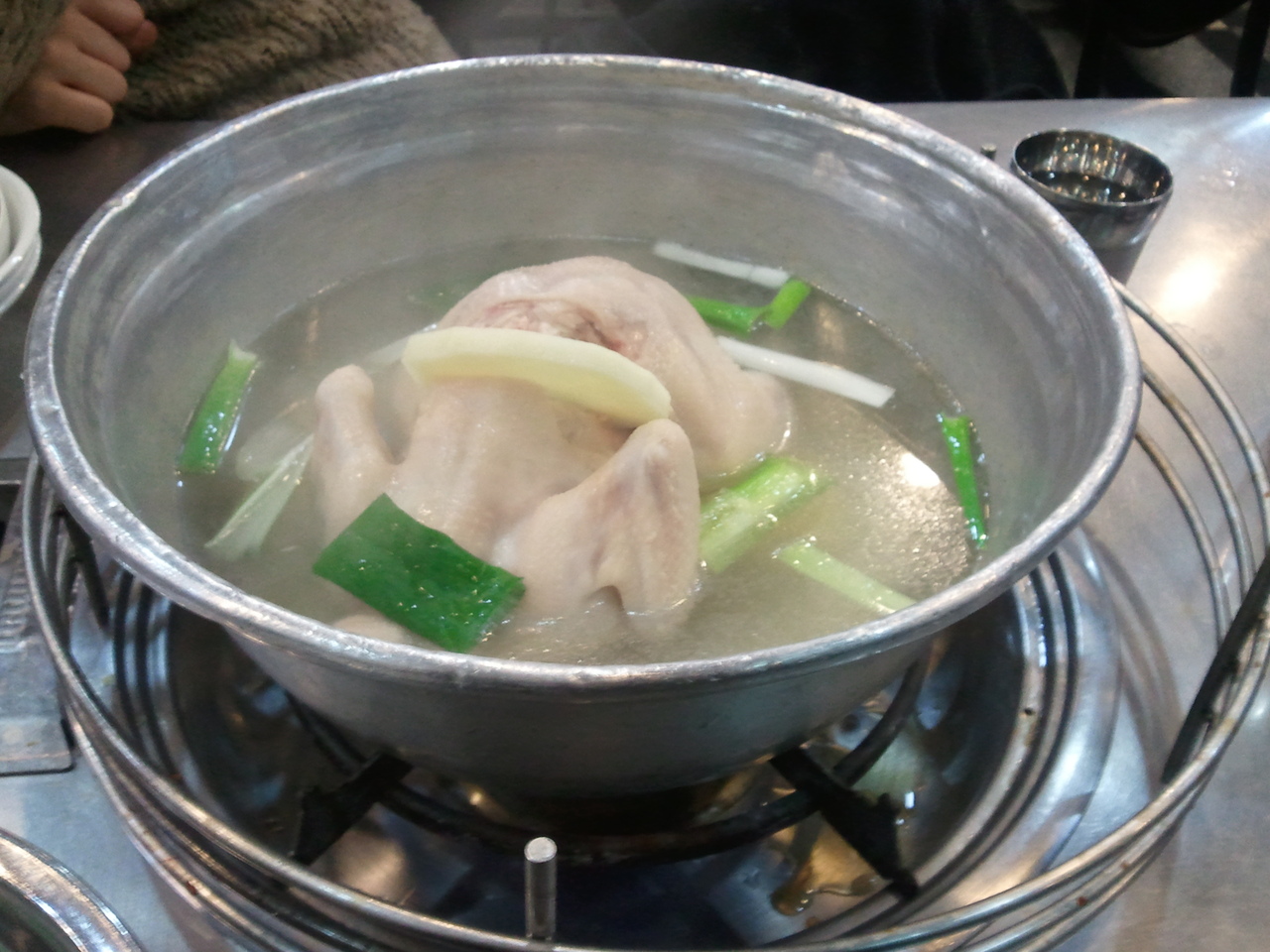 東大門にある有名なタッカンマリのお店!!丸々鶏1匹が入ったお鍋。おばちゃんが鶏をハサミで食べやすく切ってくれます。鶏の出汁が出ててめっちゃスープがおいしいです!!おばちゃんが作ってくれたタレもおいしかった♪トックを追加しましたが2人でお腹いっぱいです。