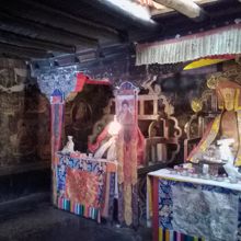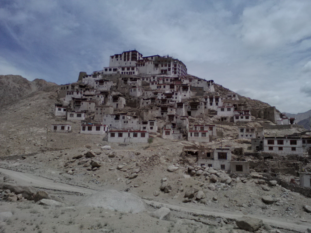 レーの東40km、カルーの町の分岐点からパンゴン湖方面に6kmほど入ったところにあるのですが、この6kmがほぼ未舗装の砂利道。バイクを借りて行ったのでガタガタと砂ぼこりでかなり大変でした。緑豊かなチェムレ村の奥の岩山の上に建っています。現在改築中のようで本堂前は資材の山。本堂を覗くと一人の僧侶が読経中だったのでMUSEUMの案内表示に従い2階へ。しかしミュージアムとはとても思えない、かなり不気味な仏像と壁画がある異空間でした。鳥肌もんです。