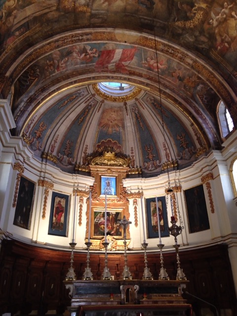 パブリック通りの国会議事堂の横通りを進むと右手にある教会。現在は修復も終わり無料で見学できました。中に入って天井のフレスコ画に圧倒されました。特にファサード近くにマルタの国旗を掲げている天使が描かれていた。この教会はあまり観光客もこなく、静かに楽しむ事ができたので、おすすめです。