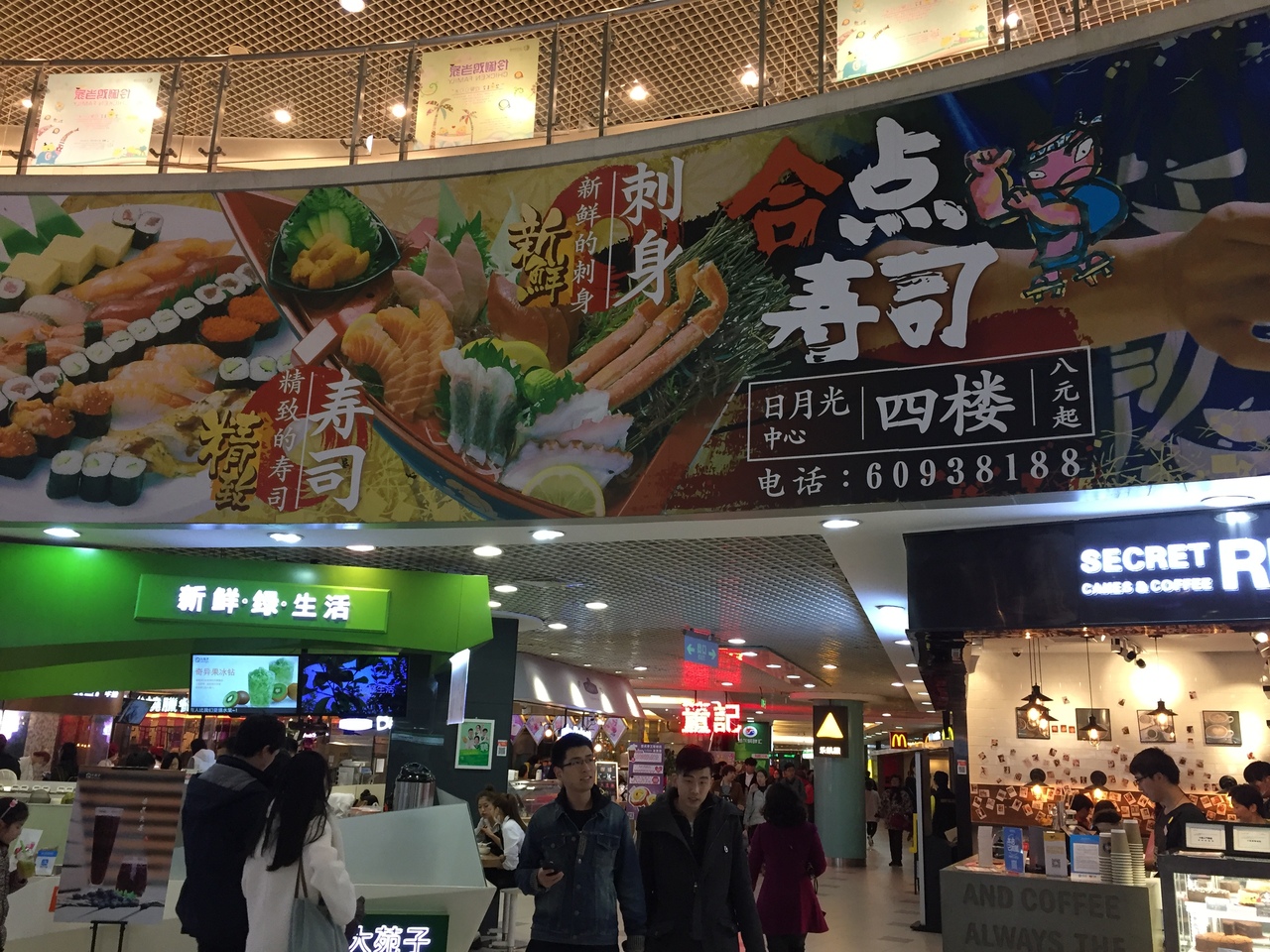 このショッピングセンター内の日本食のお店は特に、巨大広告を出してる印象でした。 それだけ、売り上げも高いって事なんでしょうか。 店名自体は日本のお店じゃなかったけど、とりあえず、"日式"と書いておけば、客が入る…的なイメージなのかもしれませんね。 日本(特に東京)でも、海外のお店の"日本初出店"とかに弱いですしね。