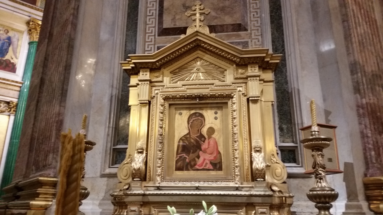 ツアーで訪問しました。世界で最も大きな教会建築の一つです。高さ101.5m。収容人数は14000人!入口には48本の円柱が立っており、重さ114トンだそうです。これだけ重い物を立てるために、土台造りに5年かかったそうです。内部にはモザイク画が描かれ、装飾には大理石や孔雀石が使われ豪華です。