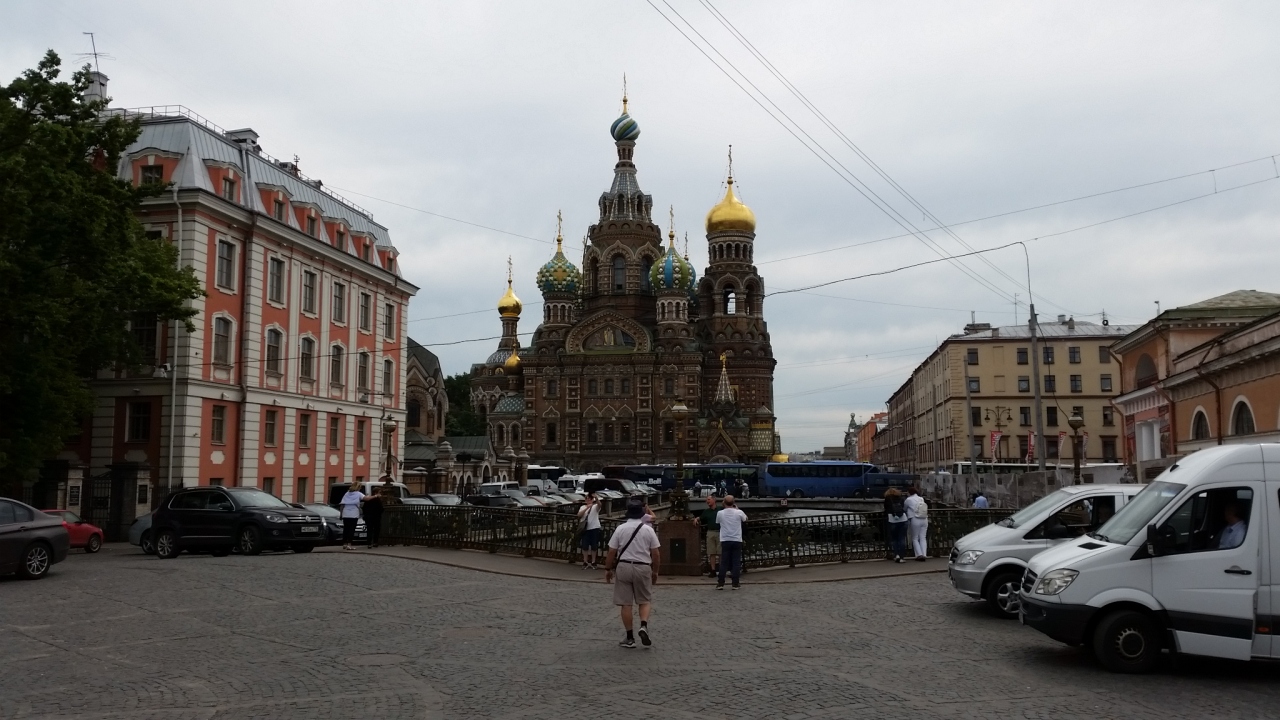 ツアーで写真を撮りに行きました。グリボエードフ運河のそばでバスを降り、写真スポットへ。多くの方々が、写真を撮っていました。1881年に皇帝アレクサンドル2世が暗殺された場所に建っています。豪華なモザイクで覆われており、カラフルな丸屋根が、美しく絵になります。