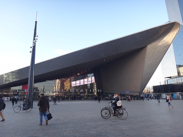 前回は外に出ずに乗り換えで利用しただけだったので、今回初めて外からロッテルダム駅を見ることが出来ました。近代的でかっこよく、まさにロッテルダムを感じるデザインの駅舎です。アムステルダム中央駅との違いがそのままアムステルダムとロッテルダムの違いのようにも感じます(どちらも好きです)