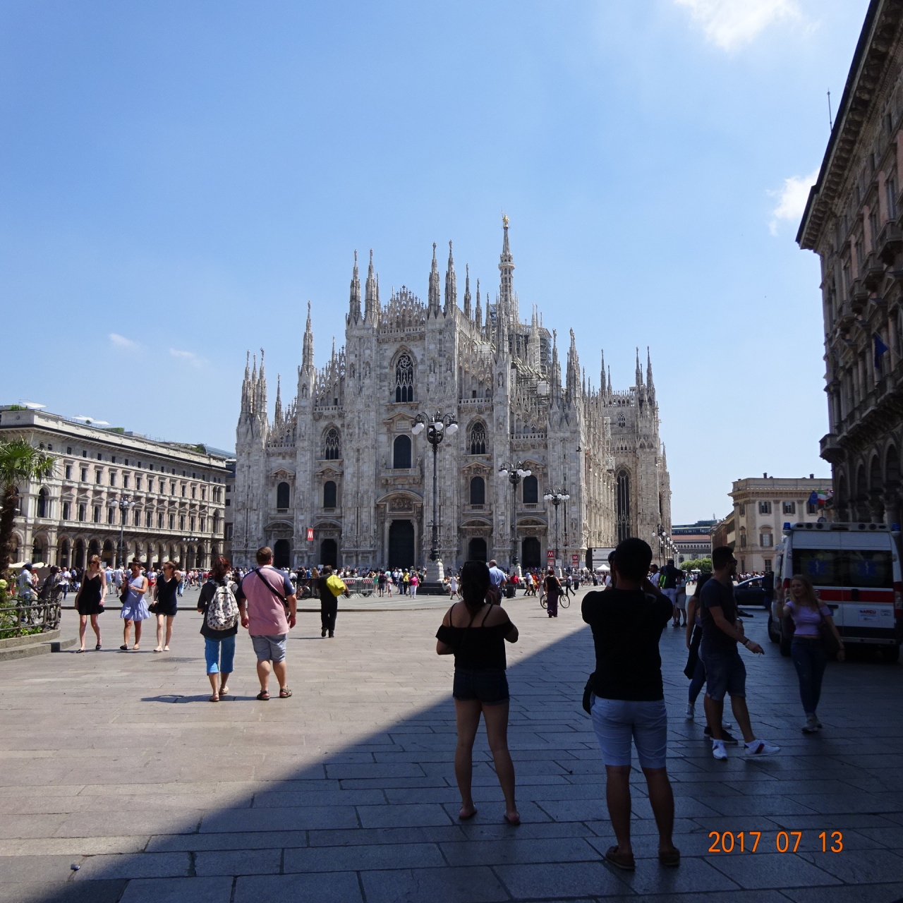 石畳の地面からの照り返しもきつく、広場の中を歩く気分にはなれず、広場の周りにある建物のアーケードの中を通って移動していました。