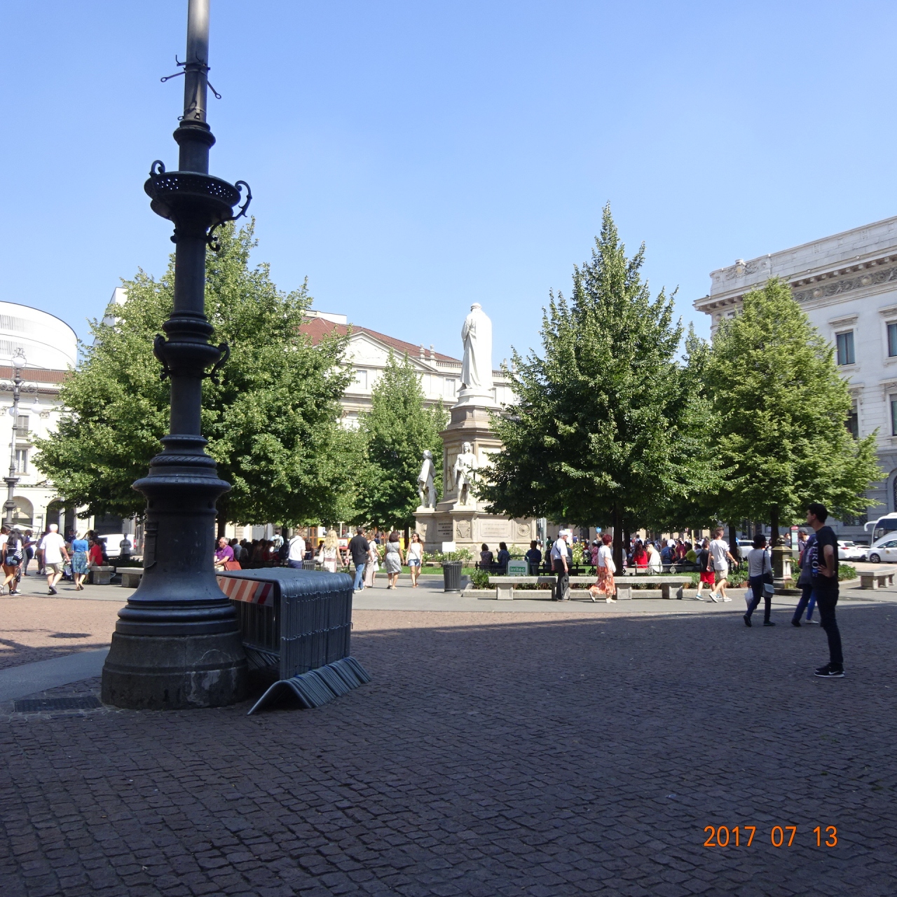 広場中央にレオナルド・ダヴィンチの像があります。