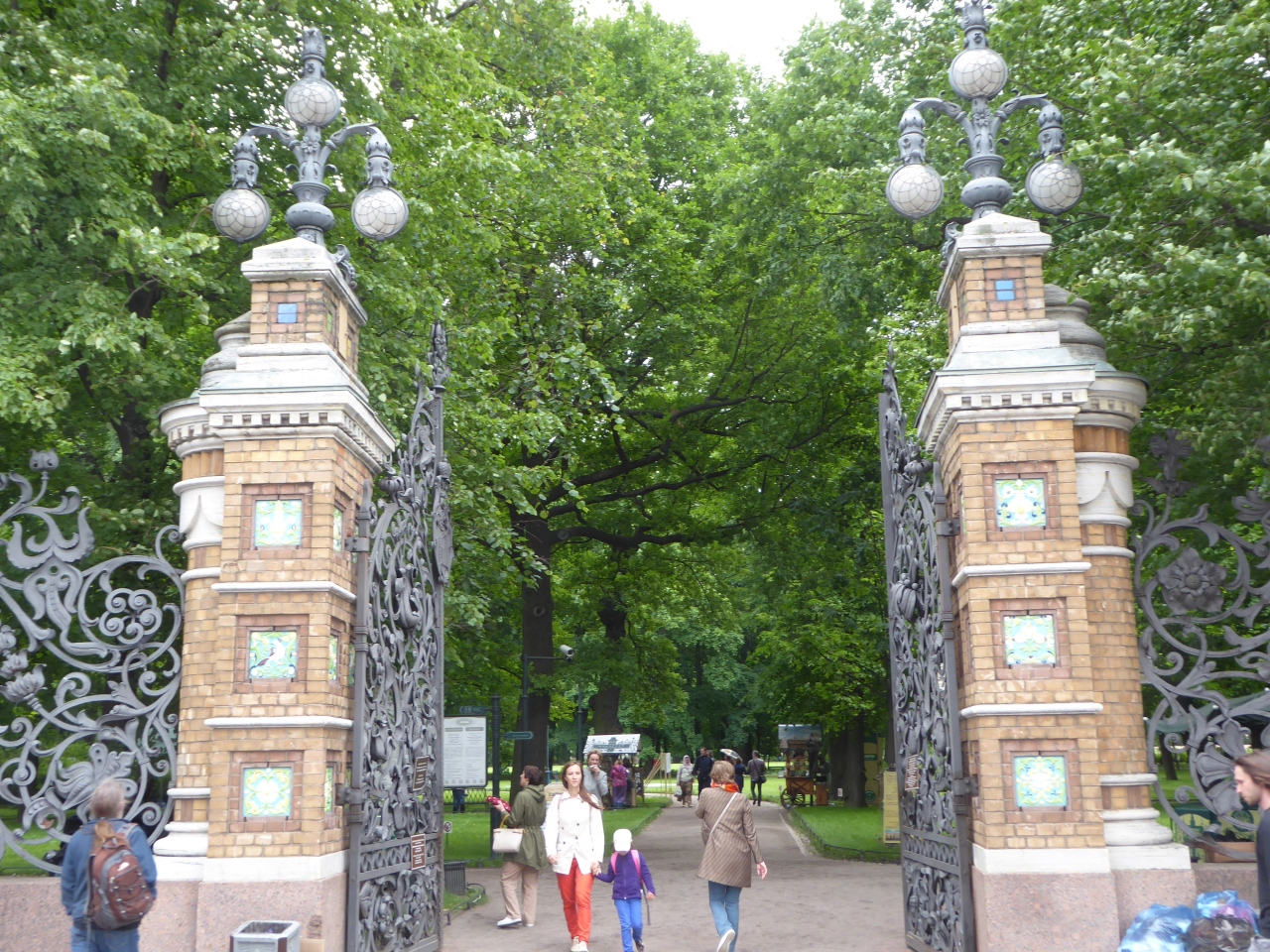 血の上の救世主教会、ロシア美術館、ミハイロフスキー城、モイカ川に接する街中にある公園です。救世主教会の西側に見事な門構えの公園入口があります。公園内は良く整備され、新婚カップルなどが記念撮影をしていました。