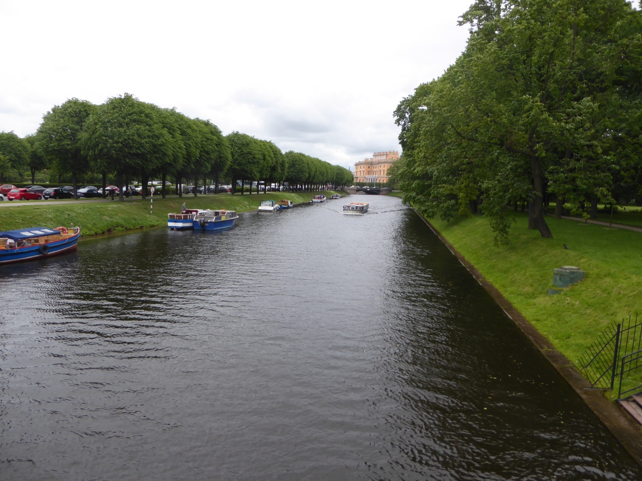北側にモイカ川が流れ、遊覧船も行き来しています。観光で歩き疲れた際に、ちょっぴり休憩するのに適当な公園だと思います。