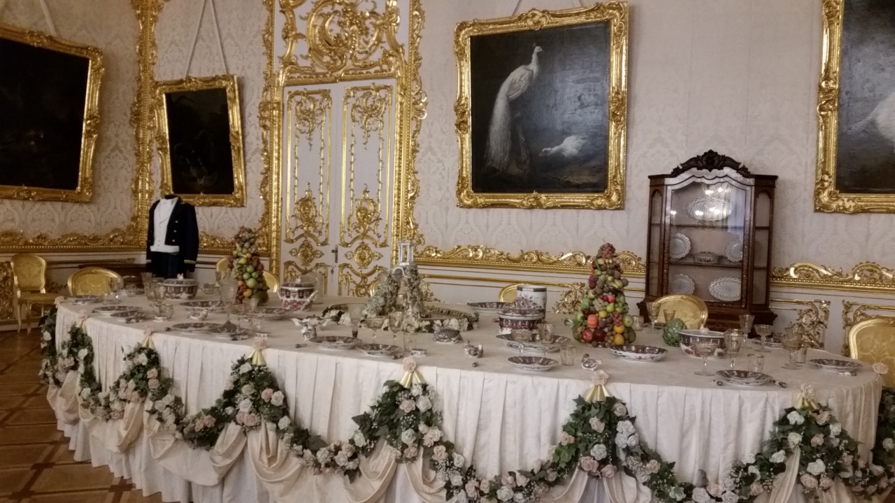 ツアーで訪問しました。予約時刻に行くと、さらに30分待ち。茶色の靴カバーを履いて入場しました。建物の外側は水色、中は金色ぴかぴかの豪華な宮殿でした。絵画の間、緑の食堂、青の客間など贅を尽くした部屋が続きます。琥珀の間以外は、フラッシュなしでの撮影が可能です。ここはさすがに琥珀琥珀琥珀・・いくらぐらいかけたのか、下世話に考えてしまいました。