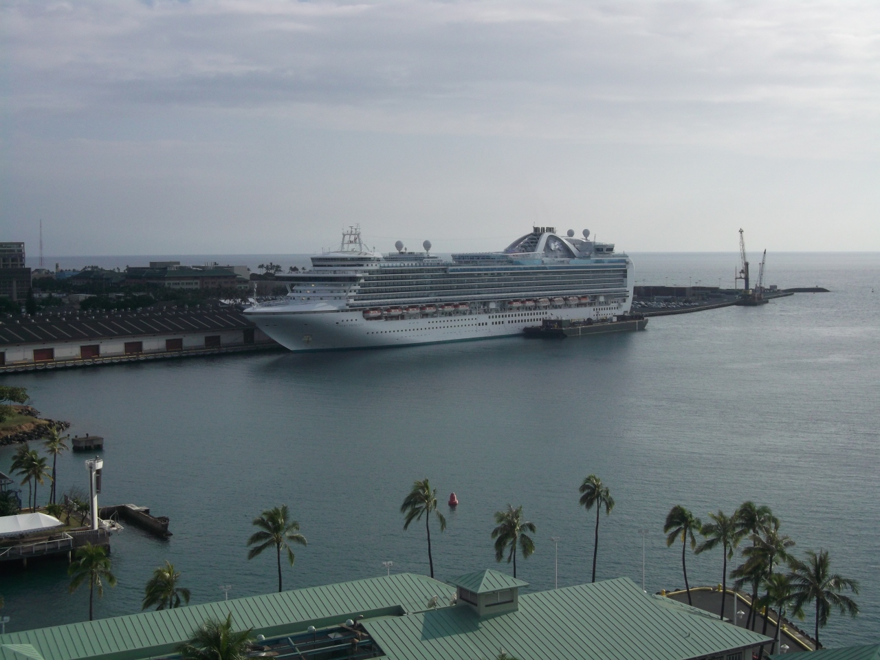 ダウンタウンのはずれにあり、アロハタワーがひときわ目立つホノルル港。かつては海上交通の要所として栄えたのでしょうが、今は飛行機に押されてややさびしい感じのするところでした。それでも大きなクルーズ船が停泊し、サンセットディナーを楽しむ人の姿が見られそれなりに役割を果たしている港だと感じました。