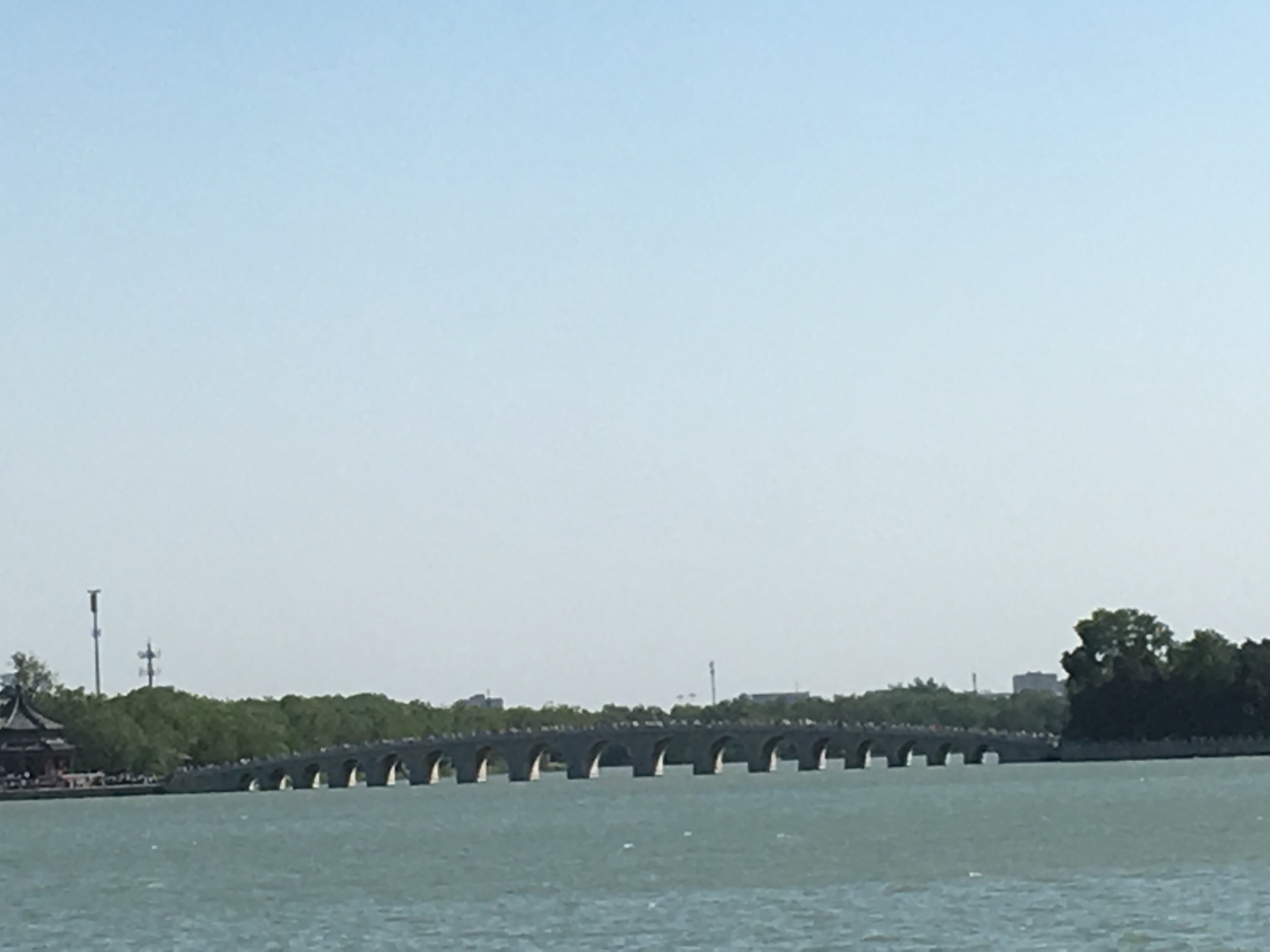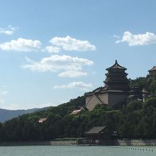 超巨大庭園、世界遺産の頤和園の敷地で大半を占めるのがこちらの湖です。東側の正門から入って最初の宮殿区の畔から、頤和園のシンボルでもある万寿山の仏香閣と共に望む湖や、あるいは更に歩を進めて長廊の中を通りながら、梁に掲げられた絵画の向こうに広がる湖とか、角度によって彩り豊かな表情を見せてくれます。このところの北京ではなかなか容易ではありませんが、どうせなら日の光をいっぱいに浴びて、空の青を映しこむような天気の日に訪ねたいところです。