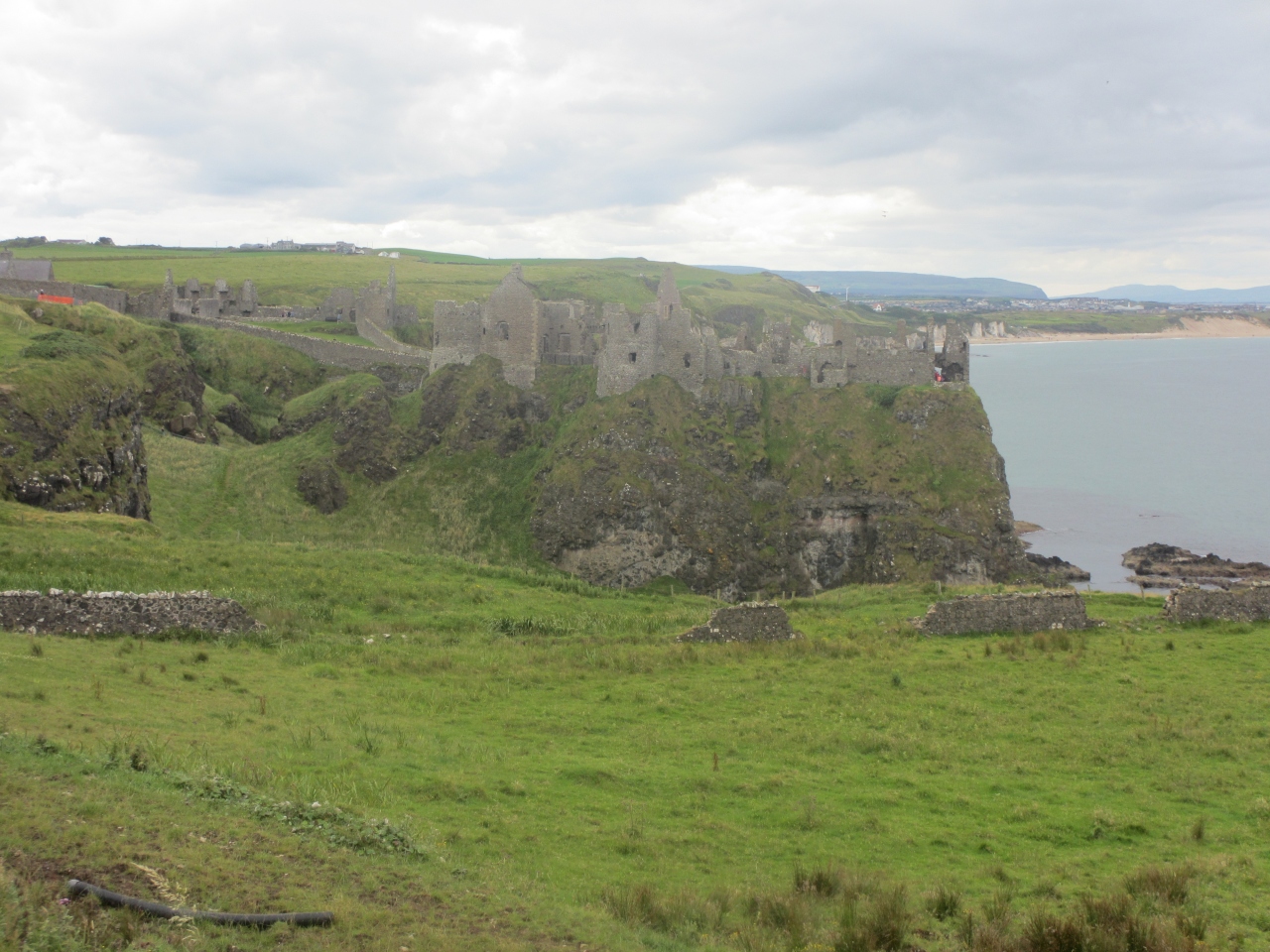 ベルファストからジャイアンツコーズウェイ方面に行く日帰りバスツアーで写真撮影スポットとして立ち寄りました。海の青色と草地の緑と崖のような場所に廃墟がかった城が建っているというコントラストが良かったです。