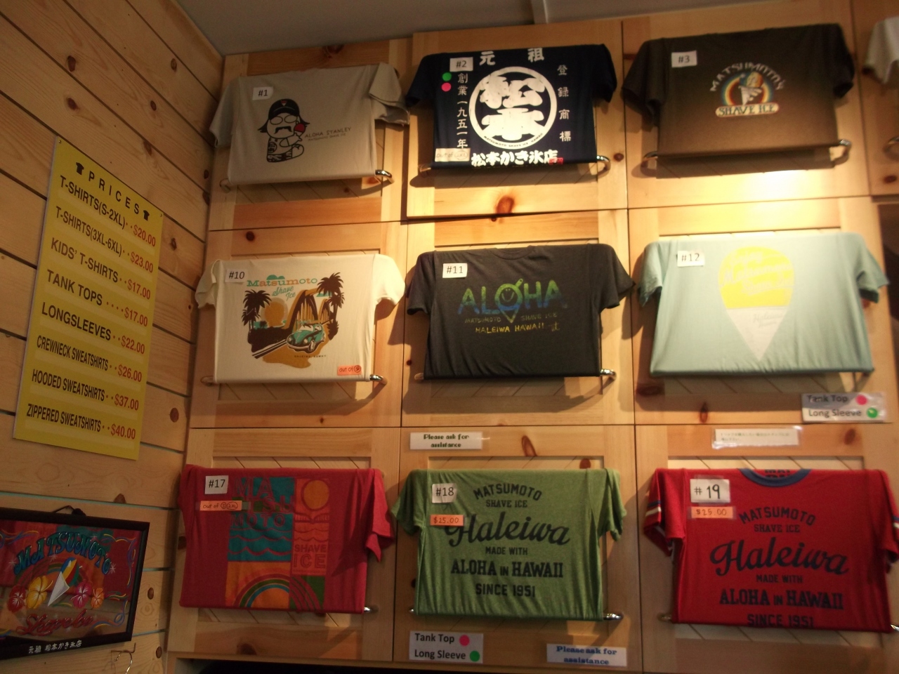 ハレイワまでやってきたら、ここのシェイブアイスは外せませんね。シロップは種類がたくさんあって迷いますが、そんな時は、イチゴ、レモンなど複数のシロップがかかったレインボーがいいです。ハワイにかかる虹を思わせるカラフルなアイスをいただき、汗も引きました。