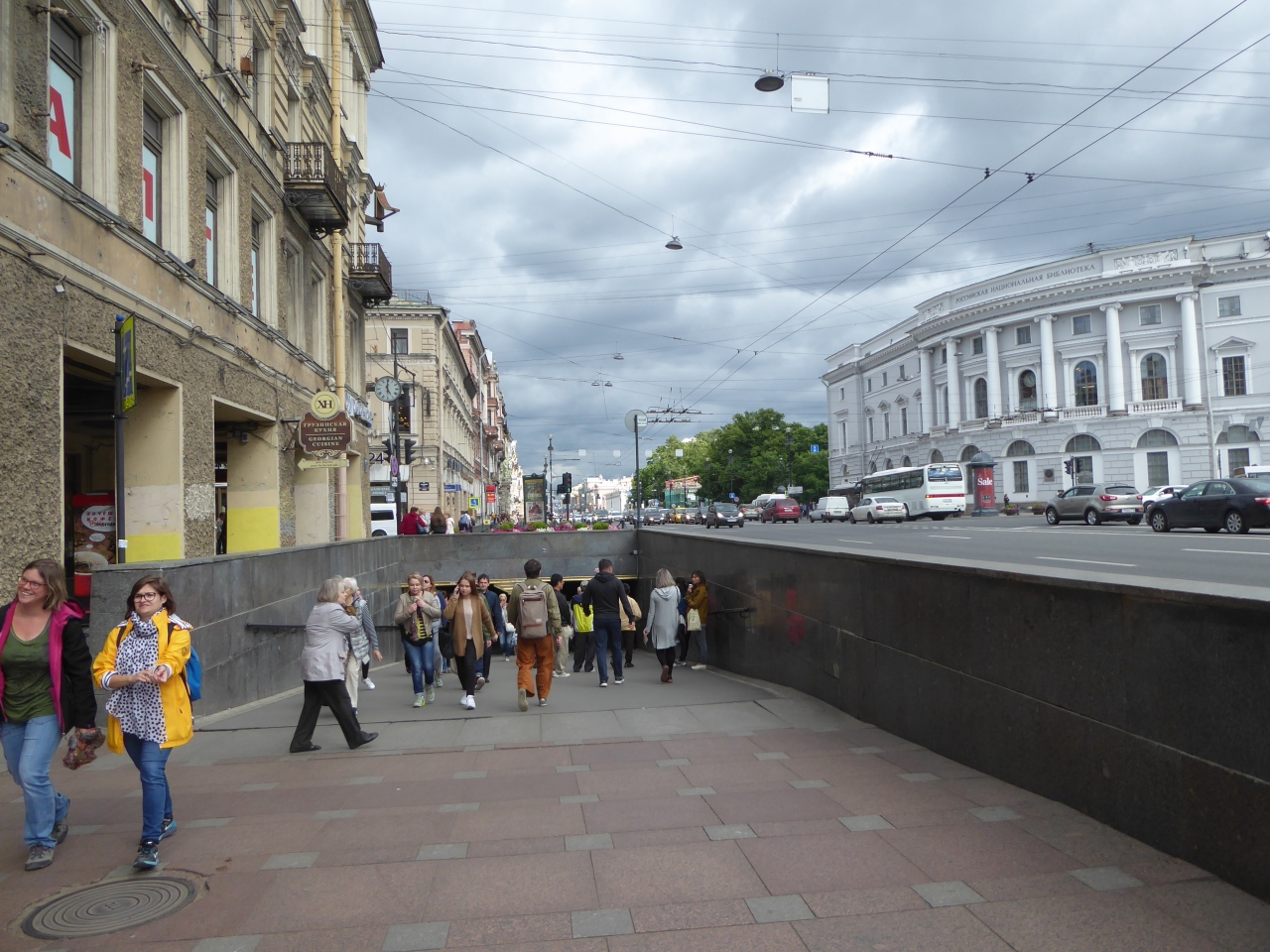 エルミタージュ美術館のある冬宮からアレクサンドルネフスキー大修道院まで街を約5kmにわたって東西に走っている大通りで、通りの周辺に沢山の聖堂や博物館などがあります。道幅の広い大通りをバス、タクシー、トロリーバスなどが走っています。メトロ駅のネフスキー・プロスペクト付近には、カザン聖堂、ロシア美術館、アレクサンドロンスキー劇場やショッピングセンターのゴスチーヌイ・ドヴォールなどがあり、多くの観光客が行きかって結構混んでいます。